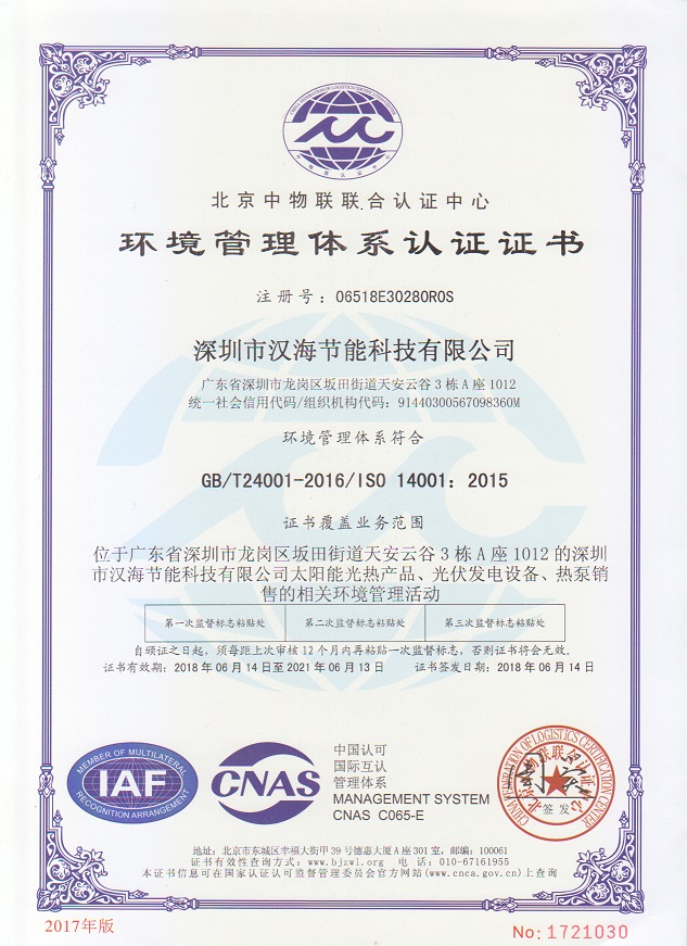 深圳市漢海節(jié)能科技有限公司成立于2011年,注冊資金6000萬元,總部設在深圳,是一家集設計、研發(fā)、施工于一體的專業(yè)化從事太陽能中央熱水工程、熱泵中央熱水工程、中央空調、光伏發(fā)電、水處理等新能源及節(jié)能環(huán)保行業(yè)的綜合服務商和工程商。在將近10年的發(fā)展歷程中,始終走在行業(yè)發(fā)展的前沿,是專業(yè)從事太陽能光熱、光伏,空氣源、太陽能熱水工程、水源熱泵,中央空調,水處理產(chǎn)品的設計、安裝、售后服務為一體的高新技術企業(yè);是專業(yè)提供太陽能中央熱水工程、熱泵中央熱水工程、中央空調工程、光伏發(fā)電工程、水處理工程、太陽能熱水工程等全面解決方案的供應商和工程商,產(chǎn)品涵蓋太陽能集熱器、空氣源熱泵、水源熱泵、中央空調、光伏組件、太陽能熱水工程等,是新能源的倡導者和推動者。公司成立以來,始終秉承“誠信、責任、專業(yè)、高效”的服務宗旨,以市場需求為導向,以為客戶創(chuàng)造價值為己任的精神,不斷開拓創(chuàng)新,通過多年的快速發(fā)展,公司綜合實力躍居行業(yè)前列。漢海擁有一支經(jīng)驗豐富、善打硬仗的專業(yè)高效團隊;擁有一批專業(yè)的高級工程師、中級工程師、二級建造師、造價工程師、電氣設計師、給排水設計師;擁有一批機電、安防、水、電等專業(yè)技術施工和售后人員,配備先進齊全,實力雄厚,技術領先。漢海以質量樹信譽、以工藝立標桿、以管理創(chuàng)效益、以服務得人心,工藝水平在業(yè)界獨樹一幟,成為行業(yè)模仿的典范。漢海承建的機電工程(設計、施工)涉及星級酒店、賓館、高檔辦公樓、花園別墅、住宅小區(qū)、學校、水療中心、工廠等各種類型的工程,工程項目遍布全國各地。漢海將致力于成為全球信賴的新能源綜合服務商,為客戶提供新能源的全方位解決方案。未來,漢海將依托國家政策,積極開拓粵港澳大灣區(qū)、中國特色社會主義先行示范區(qū)市場及“一帶一路”沿線國際市場,推動新能源的新輝煌。